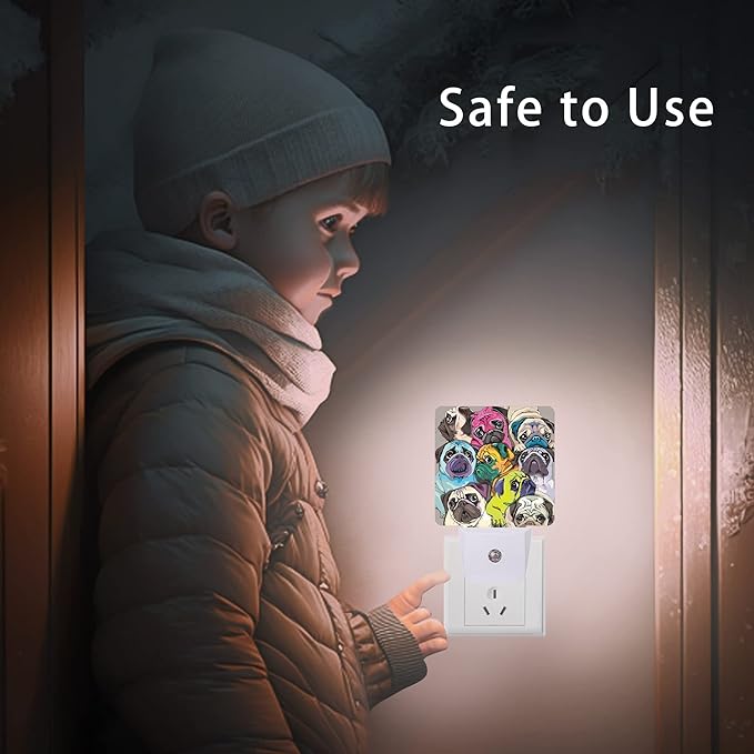 Dog Night Light,Colorful Pugs Dogs Night Lights Plug into Wall with Dusk to Dawn Light Sensors 0.5W Dim Lamp for Bedroom