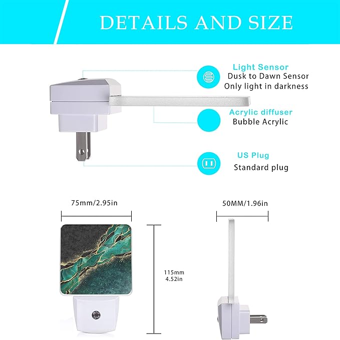 - 【Auto Sensor】 - This Night Light Has A Built-In Dusk-To-Dawn Sensor, So It Can Automatically Turn On And Off Based On The Ambient Light In Your Room. You Never Have To Worry About Turning It On Or Off Manually.