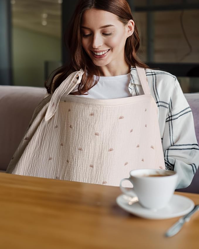 - Premium Muslin Cotton: The nursing cover is made of muslin cotton, which is soft, lightweight and breathable. It keeps cool and cozy for both mothers and babies, even in hot summer. Plus, the muslin material stays soft even after washing