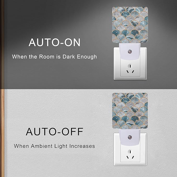 Mermaid Fish Scales Marble Night Light Plug-in LED Nightlights Auto Sensor Night Lamp Dusk-to-Dawn Lamp Home Decor for Nursery Children Girls Boys