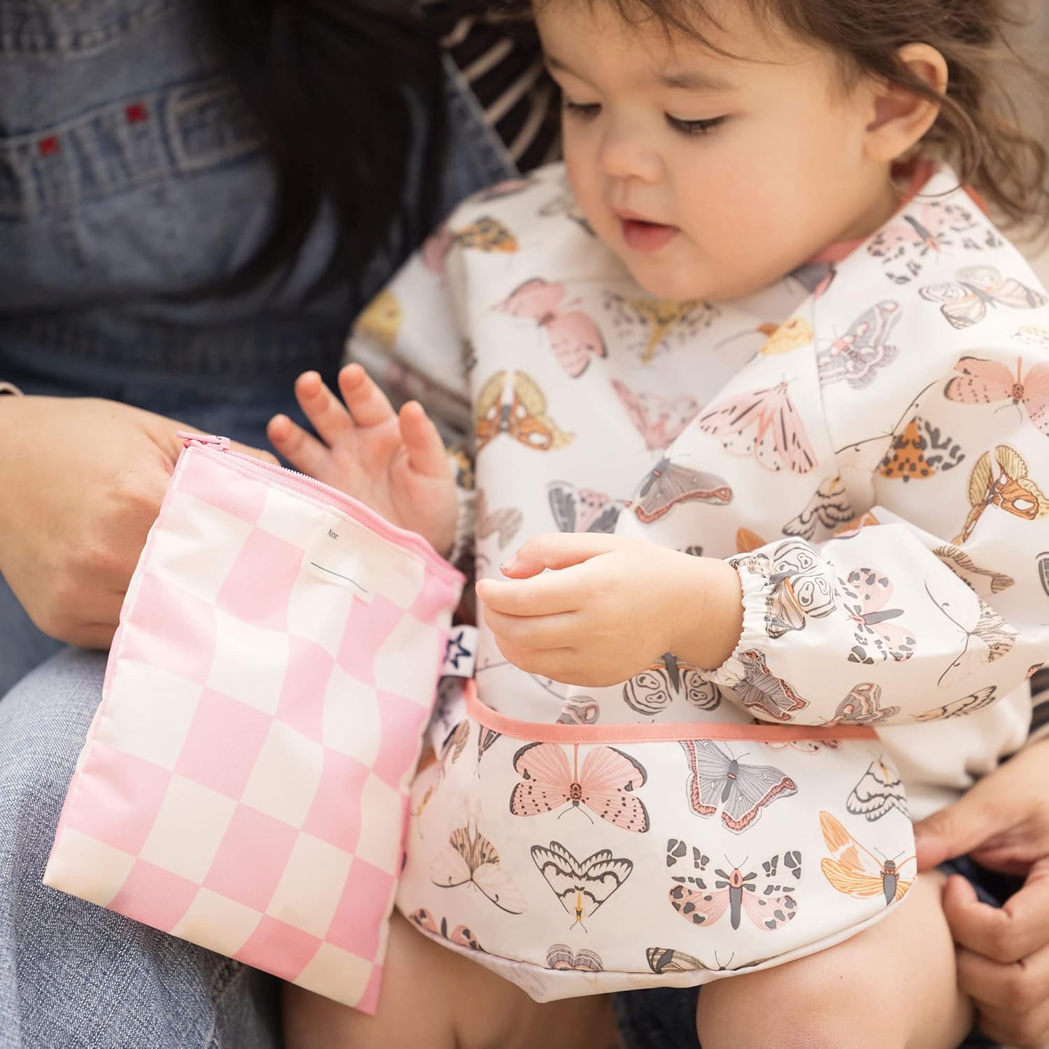 Tiny Twinkle Mess Proof Baby Bib,Waterproof Smock Baby Bib for Eating,Machine Washable Long Sleeve Bib,Baby Led Weaning,Toddler Bib,BLW Supplies(Flutter, Large 2-4 Years)