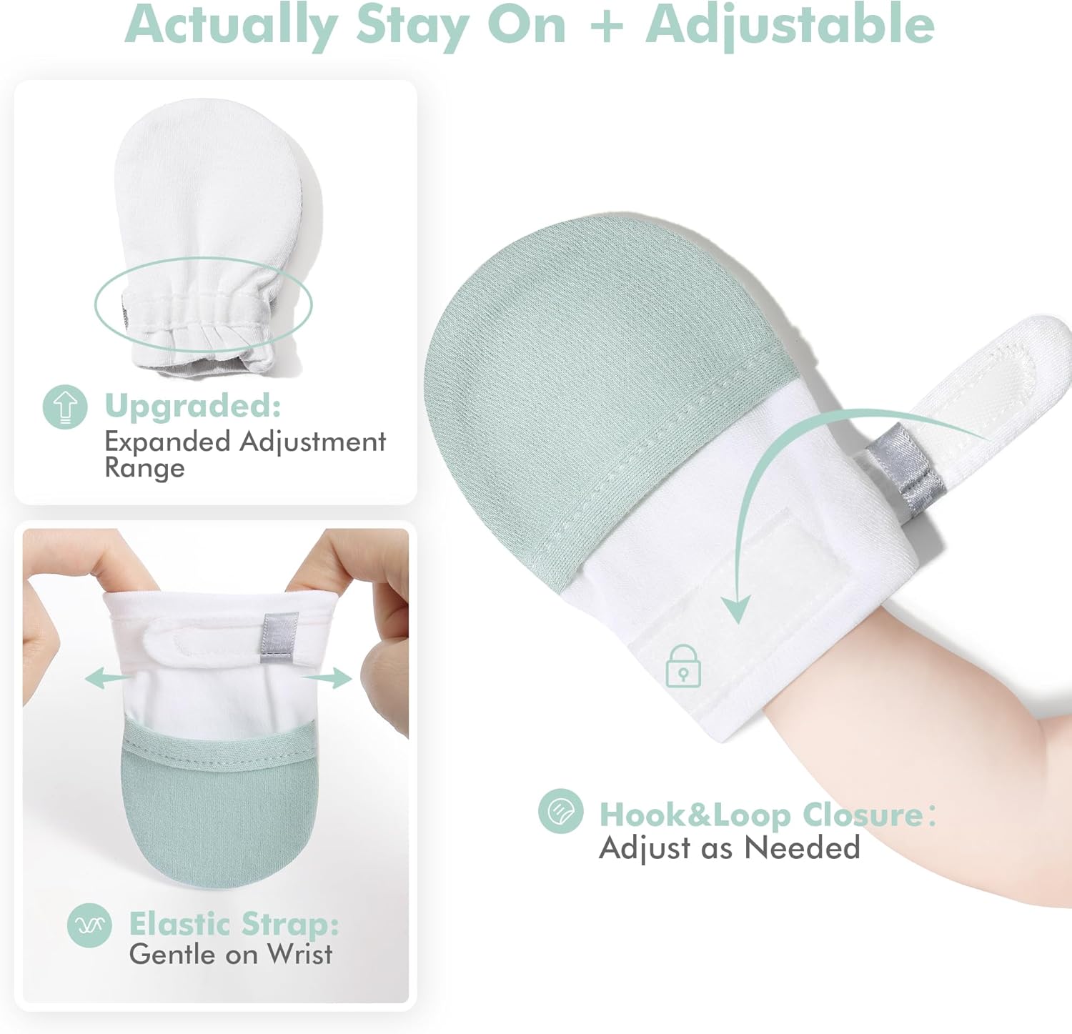 - [No Scratch: Keep Baby Safe]: These Anti Scratch Baby Mittens are designed to prevent harmful scratches & thumb sucking, also a big help with things such as Eczema, Dry Itchy Skin, Pulling hair, NG Feeding Tube and Squeezing during Breastfeeding
