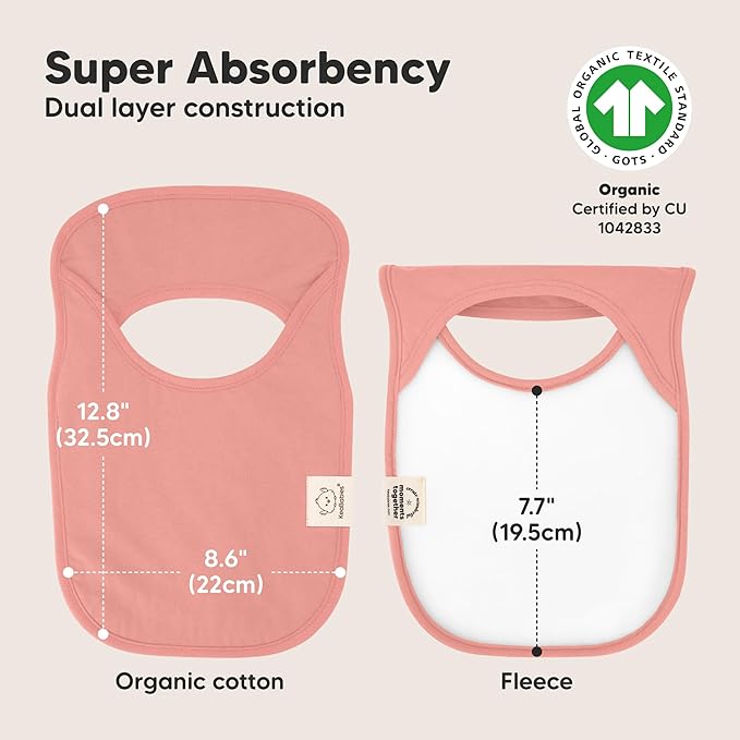 - For Heavy Droolers, Little Teethers - Made with Organic Cotton (GOTS-Certified by CU 1042833) and backed with water resistant fleece for added absorption, the Hallo Baby Bibs for Girls and Boys keep your baby's clothes fresh all day long.