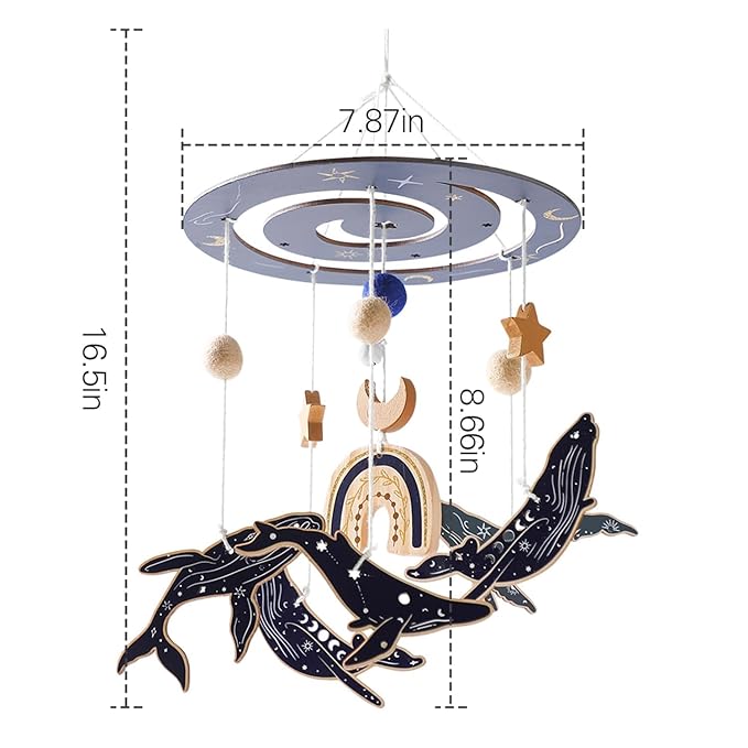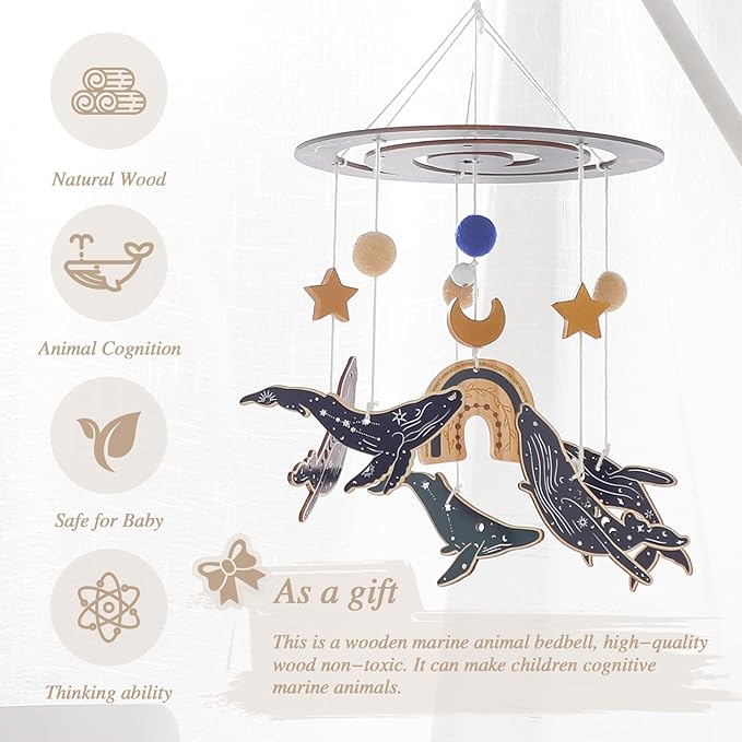- đłăExcellent DesignăďźLull your baby to sleep with this fun ocean theme mobile hanging. Wonderfully designed whalesăhappy ocean friends are dancing around blue and white felt balls on baby crib mobile. Soothe your baby and let them sleep peacefully with the magical underwater scenery.