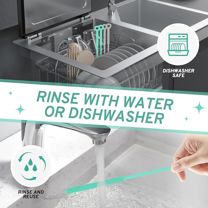 - 【Easy to clean and keep dry】Our straw brushes are wrapped in silicone so you can wash them in the dishwasher or rinse them with water, and hang them to dry afterwards (with a hanging loop on the end of the brush) for amazing drying speed!