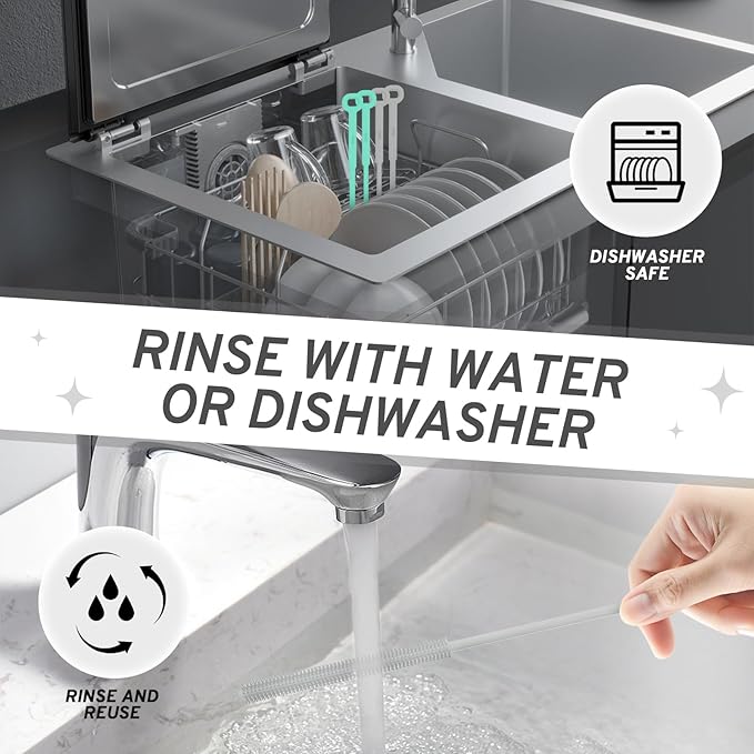 - 【Easy to clean and keep dry】Our straw brushes are wrapped in silicone so you can wash them in the dishwasher or rinse them with water, and hang them to dry afterwards (with a hanging loop on the end of the brush) for amazing drying speed!