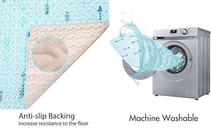 - Safe and Slip Resistant: Our 50x50 play mat for playpen features a soft microfiber surface that is Non-Toxic, with no plastic odor, and gentle on your baby's delicate skin. The polyester padding layer provides comfort for your little one. The underside of the baby mat is made of anti-slip rubber, so it stays securely in place.