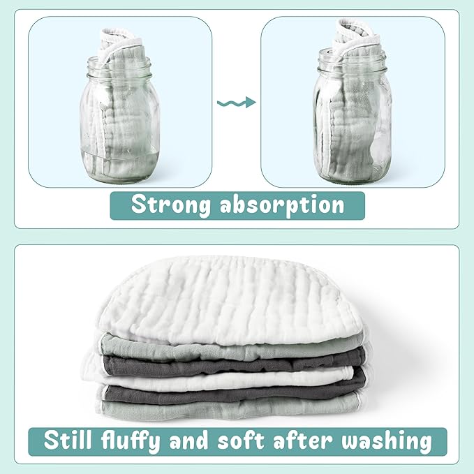 - Strong Absorbent: Our bib has 6 layers of soft cotton so that it can effectively absorb liquids. Your baby can use it to stay dry and reduce the hassle of soaked clothes and skin.