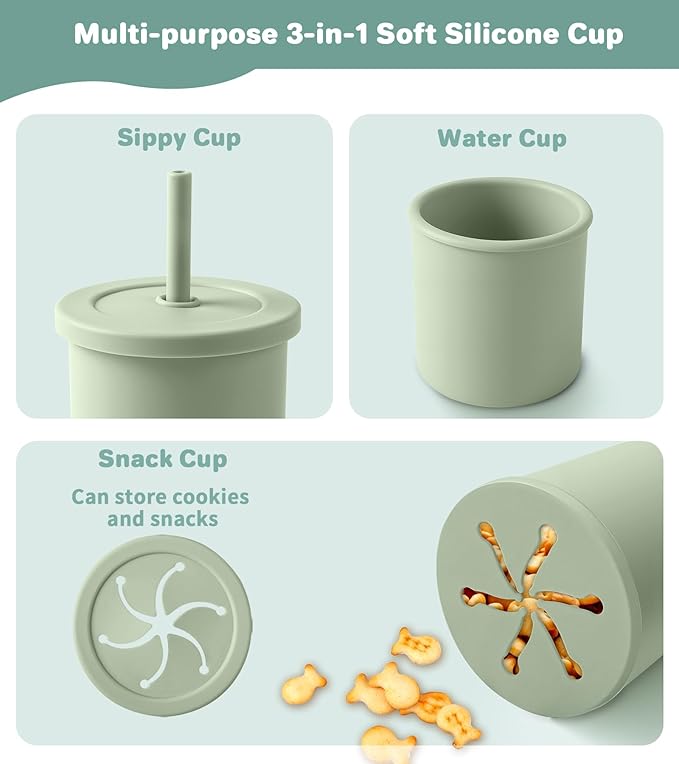 - 【TRAINING CUP & SOFT BIB】-Multi-use training cups triple as toddler drinking cups or baby food storage, Soft silicone protects baby's developing teeth. designed to fit baby’s little hands and mouth. The baby bib is soft and adjustable, and a large pocket for collecting any scattered food or liquid, Which Keeps your little one feeling comfy and clean.