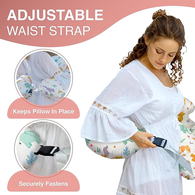 - [Baby Safety is Our Priority] The innovative cloud design offers excellent security and support for mom, preventing your baby from rolling in or away while breastfeeding. Plus, the unique C-shaped base and the adjustable waist strap eliminates the gap between you and your baby. It securely fastens to your body and ensures that the pillow stays in place while providing a snug fit that promotes comfort during nursing sessions