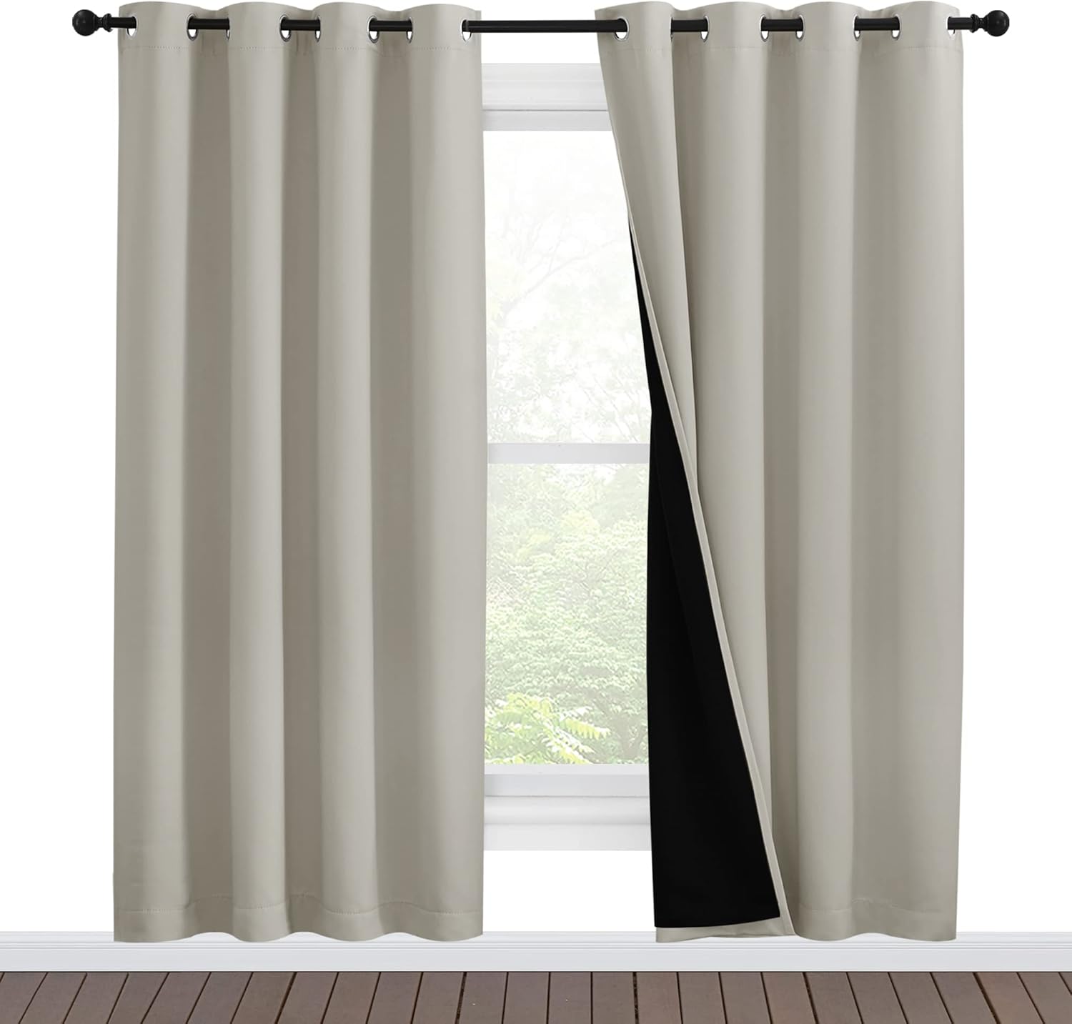 NICETOWN 100% Blackout Window Curtain Panels, Full Light Blocking Drapes with Black Liner for Nursery, 78-inch Drop Thermal Insulated Draperies (Natural, 2 Pieces, 55-inch Wide Per Panel)