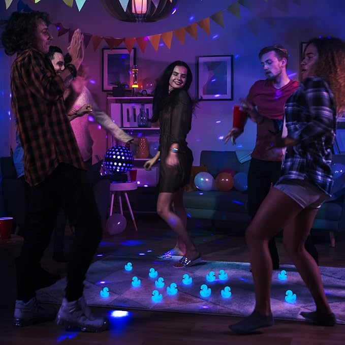 - Easy to Use: the glow in the dark blue ducks can squeak and float in the water, but you should be careful of that when you use them in the water, you can't use the boiling and hot water, in case of the bad using experience