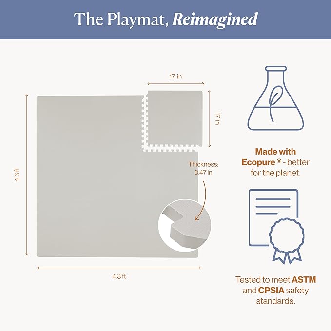 - CLASSIC FOAM PLAYMAT Design: Stylish, minimal, and timeless baby playmats. Crafted with from technologically advanced biodegradable foam, these puzzle play mats offer a safe and comfortable space for your little ones.