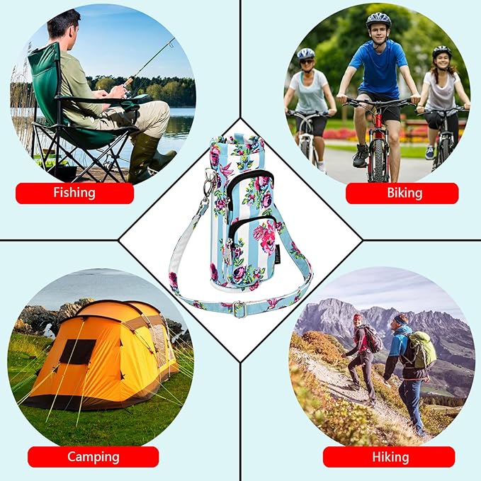 - PRACTICAL FEATURES;The bag can press the buckle to adjust tightness and fit bottles of different sizes,With a adjustable and removable strap,It is widely used for commute,hiking, cycling, camping, travel, or even if you're at the beach, sports events