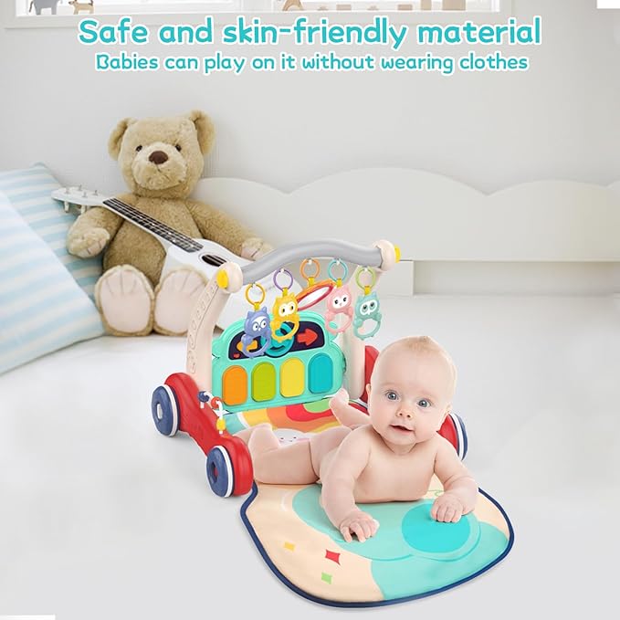 Baby Play Mat Gym, 2 in 1 Baby Walker Tummy Time Activity Mat with 5 Infant Sensory Toys, Music and Lights Floor Play Mat as Birthday Gift for 0-12 Months Boys Girls