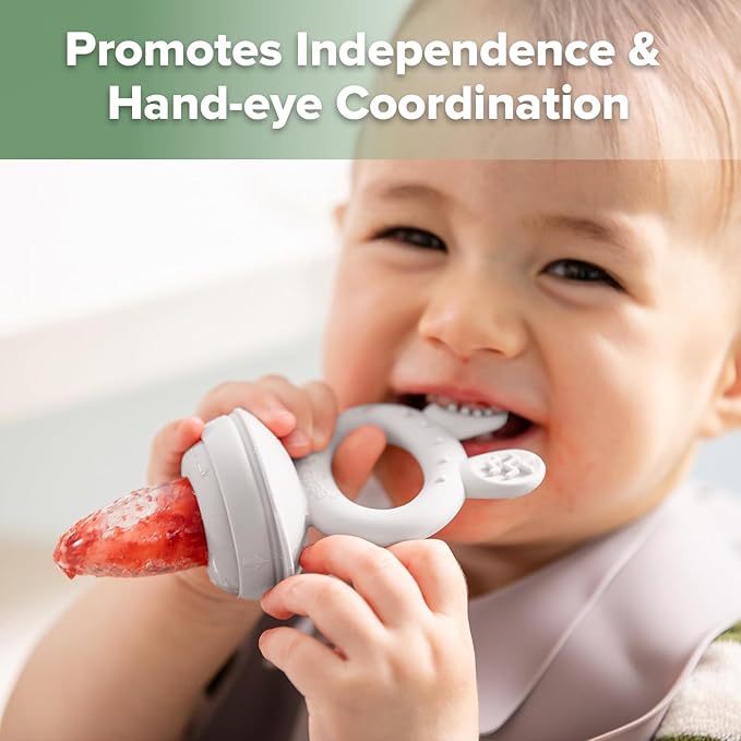 - PROMOTES INDEPENDENT FEEDING: Designed with an easy-to-hold ring suitable for tiny hands, our Feeder fosters self-feeding skills and enhances hand-eye coordination.