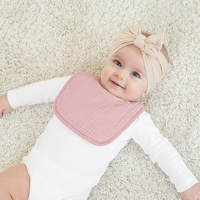 • 100% Cotton: Our Bearmoss muslin baby bibs are made with 100% cotton material that is soft and gentle for your baby's delicate skin. With muslin fabric, making them lightweight and breathable, also perfect for everyday wear.