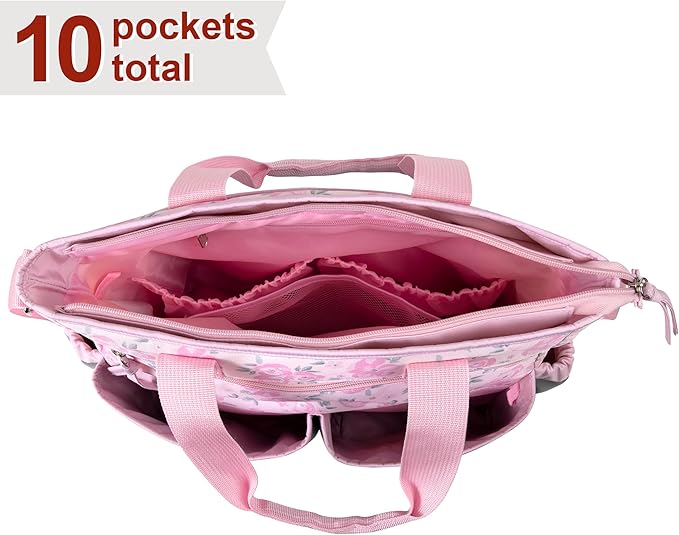 - PORTABLE CHANGING STATION: Pink diaper tote bag is crafted to be cute, fashionable, and convenient! This diaper bag 3 piece set is perfect for carrying all baby needs for a quick & easy diaper change, anywhere & any time
