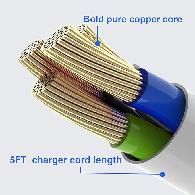 - Power Plug combined 5 ft feet (150 centimeters) charger cord length