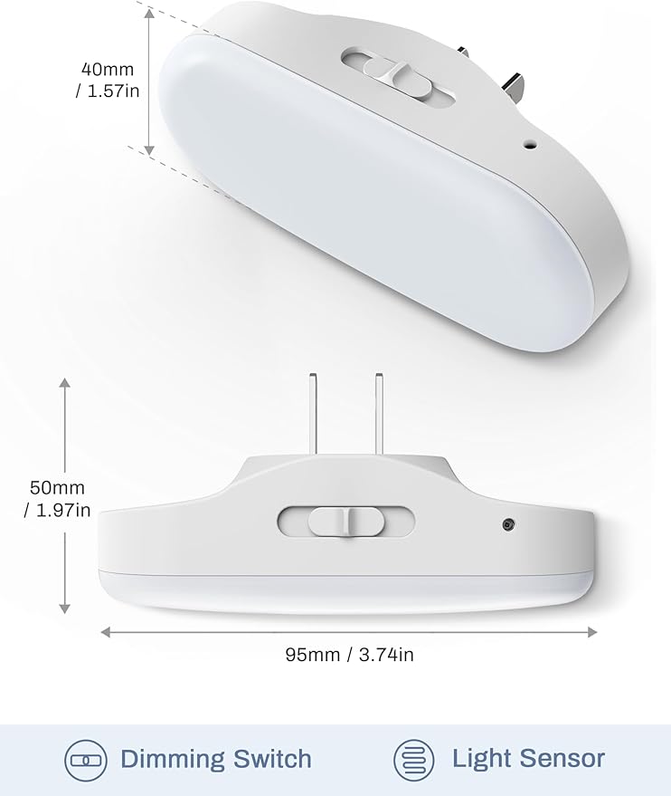 - 【Easy To Use】: Humanized compact design. Fits into just one-half of any type of standard wall outlet, leaving the second opening free. Our night lights plug into the wall directly, making them easy to install and convenient to use in any room of your home.