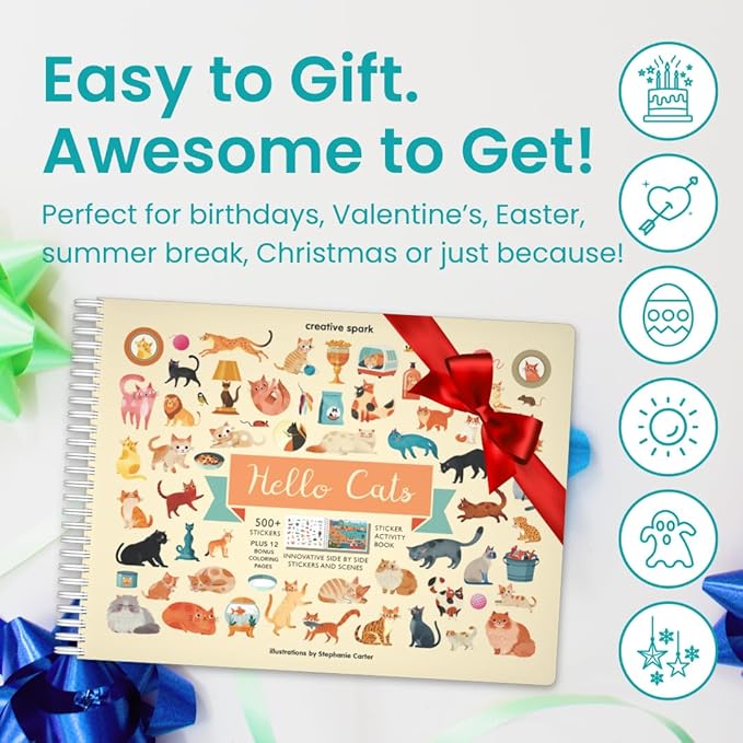 - Gifts for kids: The cat-loving child in your life will jump for joy when opening this gift! Grandparents love our Mom and Dad-approved learning activity books for boys and girls and all the entertainment they bring. Cat stickers are great rainy day activities and make the perfect gifts for birthdays, holidays, Montessori classrooms, and for make-believe enthusiasts ages 4-8.