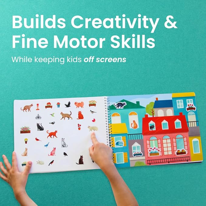 - Learn through play: Kids build fine motor skills, explore spatial awareness, and strengthen hand-eye coordination as they peel and stick stickers onto colorful scenes! Engaging in conversations about the sticker book characters will help imaginations run wild & encourage make-believe and pretend that can foster bonds between you and your child. Go ahead - play on!