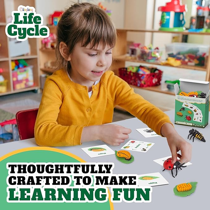 - Life Cycle Matching Card Set: Contains a set of plastic animals of the life cycle of a Ladybug. It helps demonstrate the life cycle of animals with beautiful 3D designs that entice kids to learn!