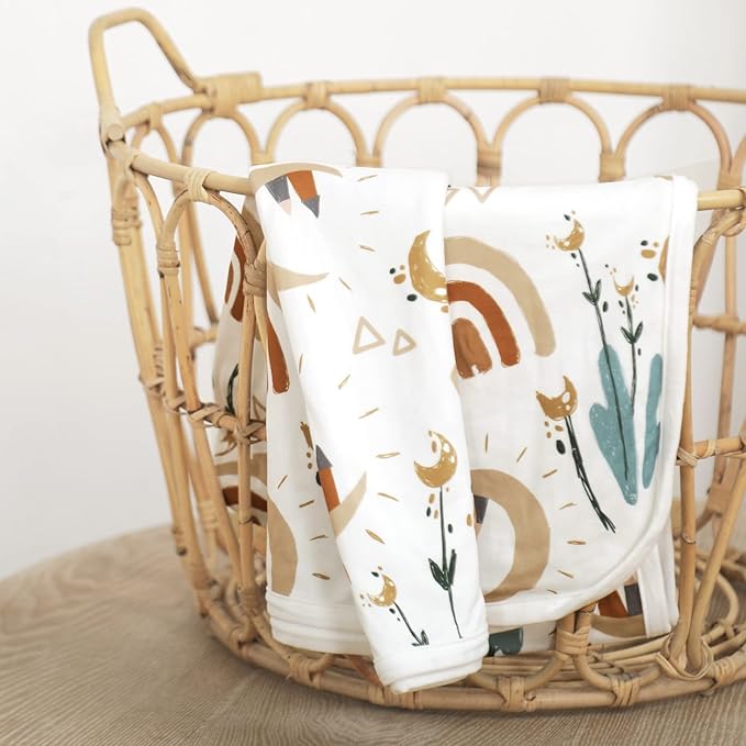 - Double Layer: Double layer in medium weight is perfect for all seasons. Measures 34" W x 44" L is great as a swaddle or receiving blanket in cold season and make it as a quilt and play mat in the hot season. This baby blanket will bring a comfortable sleeping temperature to your baby.