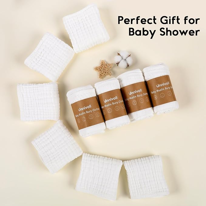- ❤Safety Comes First: Made from 100% premium quality cotton,Unnivoll muslin burp cloths is certified to meet Consumer Product Safety Commission (CPSC) guidelines, eliminate all potential risks and provide a soft, breathable, cloud like comfort for your little one. The natural muslin is also suitable for all skin types including sensitive and delicate skin, perfectly use on the face, hand and body.