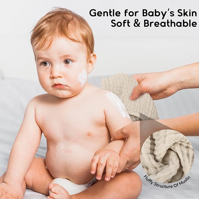 - Verstile Baby Essentials: Designed with a gender-neutral color, our muslin burp cloths will be a thoughtful present for any occasion like baby shower, baby registry, birthday, Christmas, or you can use it as burp rags, baby bibs, baby washcloths and towels, baby wipes, anything else that's available. A must-have for teething baby and mess no more.