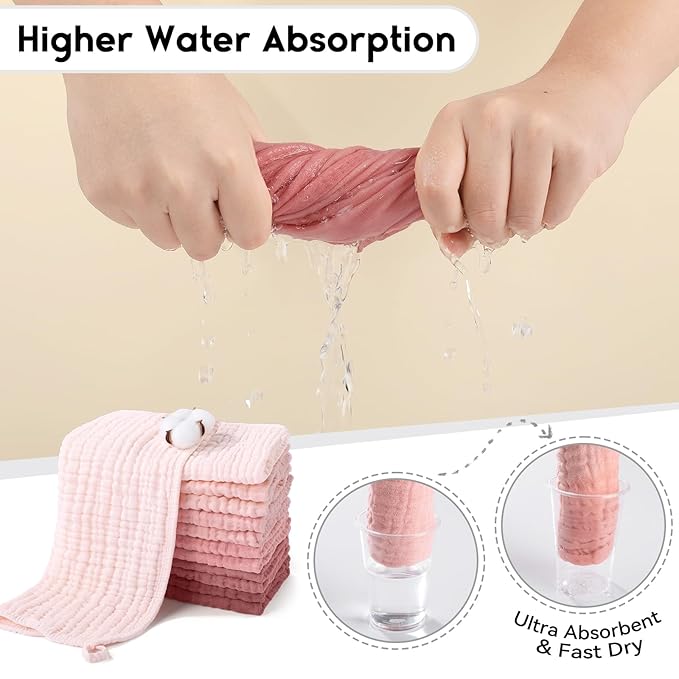- ❤Designed for Delicate Baby: Each set comes with 6 vibrant colors that will easily match any outfit, suitable for both boys and girls! Lanyard design make it easy to hang or dry, avoid germs accumulating. Perfect 12 pcs meet your baby's different need. Babies and parents will love the vibrant and bold colors burp cloths.