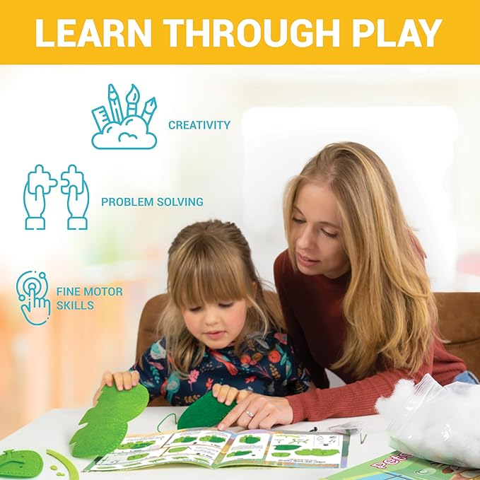 - šØ CONTAINS EVERYTHING YOU NEED: This sewing kit contains everything you need (yes, really everything) so you can get started straight away on these fun craft projects. This 165+ pcs set includes 8 pre-cut felt projects, 7 colors of embroidery thread, 10 pairs of craft eyes, plastic and metal sewing needles, 40 straight pins, needle threaders, scissors, stuffing, and easy to follow instructions.