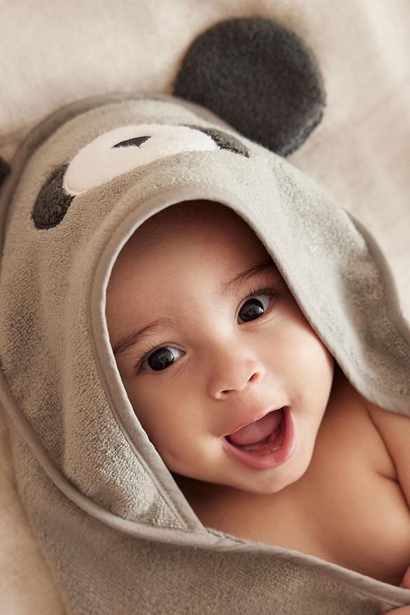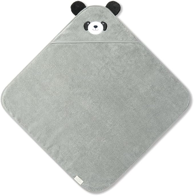 MORI Baby Hooded Bath Towel with Panda Design in Grey - Unisex Soft Wrap Cloth for Infants and Newborns - 30 x 30”