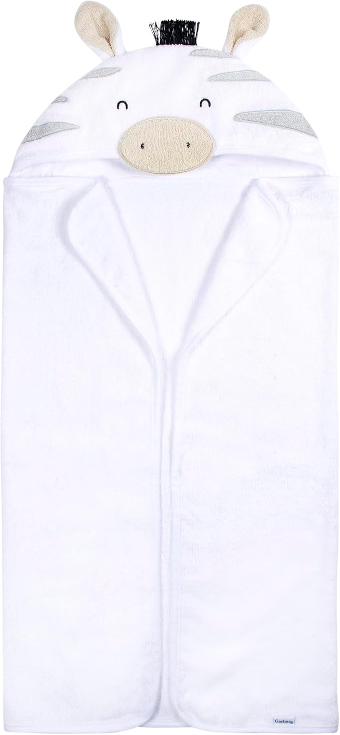 Gerber Baby 4 Piece Animal Character Hooded Towel and Washcloth Set, Grey Zebra, One Size
