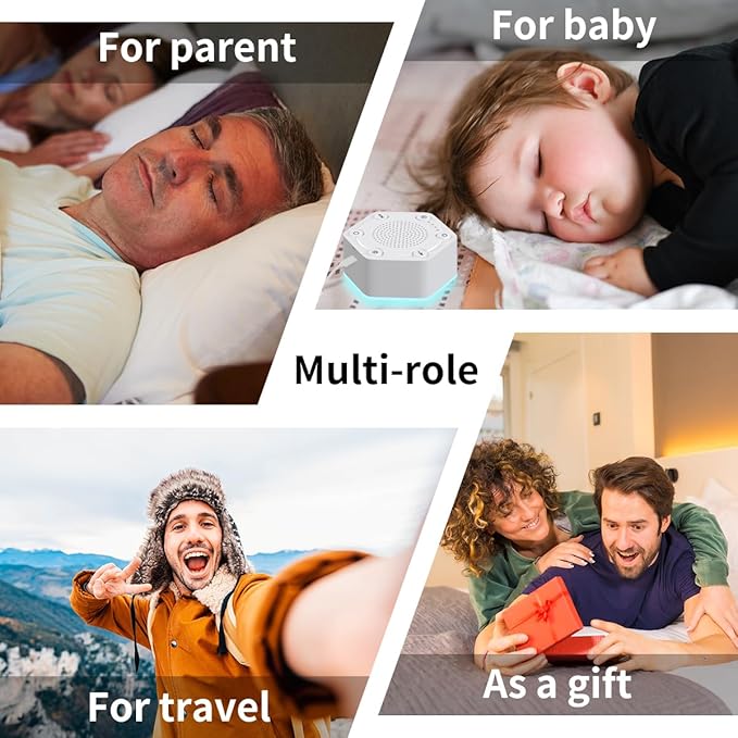 - ❤【30 Non-looping Soothing Sounds】 Including brown noise, pink noise, white noise, fan sounds, rain sounds, thunderstorm, water drop, waves, singing birds, train, fire, lullabies, piano, bless song, meditation and other soothing sounds.