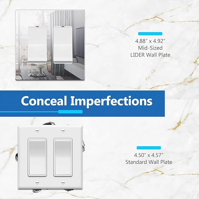 - Easy Installation - LIDER midsize outlet covers are easy to install and perfect for any decorator-style devices of the same configuration, making the upgrade quick and hassle-free. The mid-size 2-gang dimensions are 4.88" height x 4.92” length.