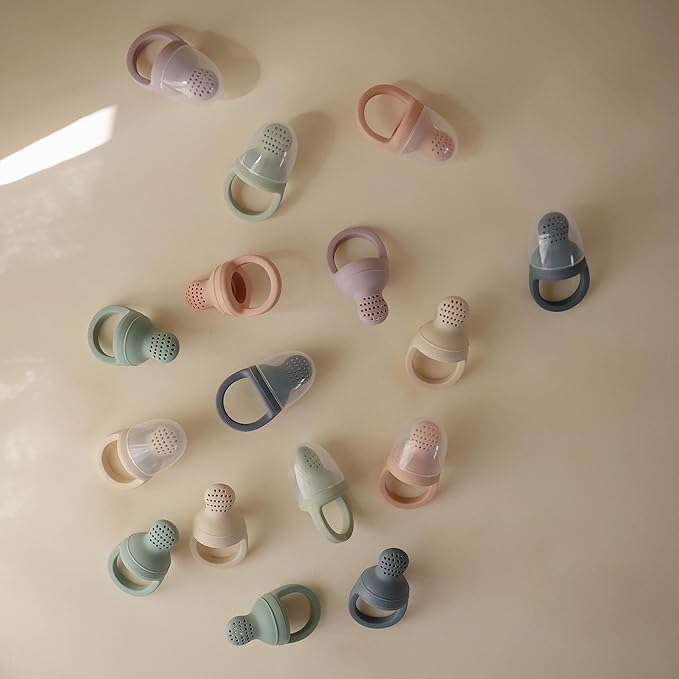 - Sofe & Soft Silicone: Made from food grade silicone and featuring an easy-to-clean, two-piece design, this feeder will quickly become a favorite for at-home meals or on-the-go snacks. Its handle is easily held by little fingers as the small holes release the right amount of fresh or frozen favorites from its soft but sturdy design. All mushie Fresh Food Feeders are Prop 65 and CPSIA Complaint.