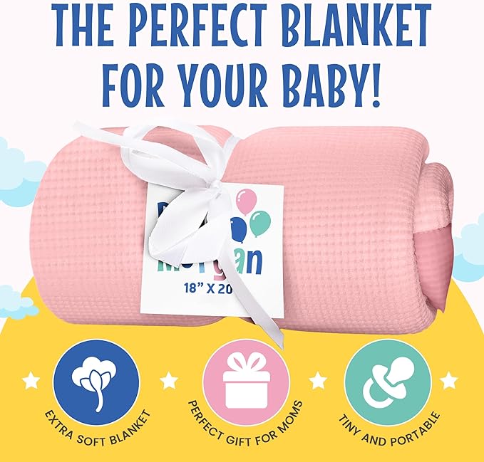 - MINI PINK BABY BLANKET: The Baby Morgan mini baby blanket in Pink measures 18" x 20", providing a perfect size for cuddling and comfort. The soft waffle knit baby blanket design adds a sweet, cozy touch to your baby’s space, making it an ideal choice for keeping your little one warm and secure in a gentle, soft color.