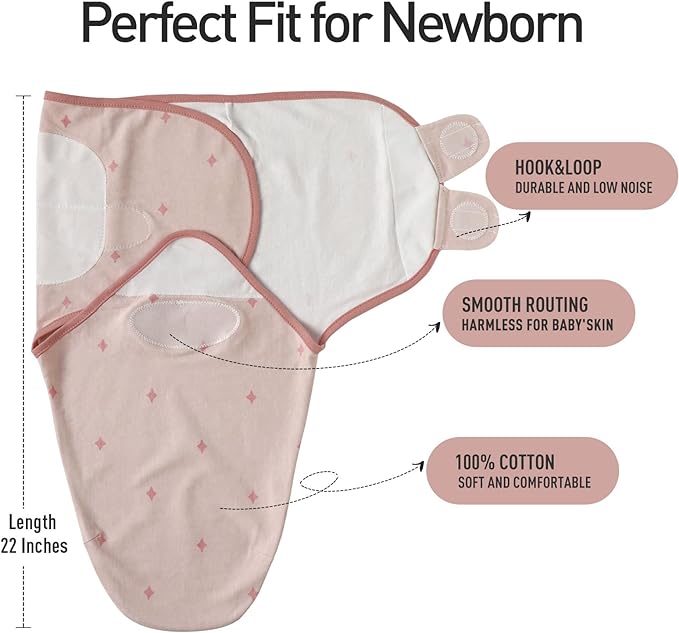 - Adjustable: Swaddling your baby snugly becomes easy with our adjustable fabric wings that fasten securely with hook and loop to create the perfect fit. You can adjust the tightness of the baby swaddle wrap with your baby's growth