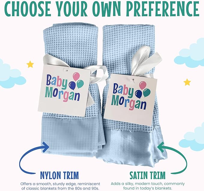 - VINTAGE STYLE WITH A NYLON TRIM: This cozy waffle blanket baby features a nostalgic design inspired by 80s and 90s baby crib blankets, complete with a smooth nylon trim. Its timeless vintage look brings warmth, charm, and style to any nursery setting.