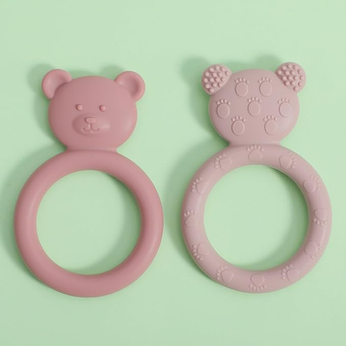 Silicone Baby Teether, Teething Toy Ring for Babies, Easy to Hold Design, BPA Free (Power Rose + Dusty Lilac)