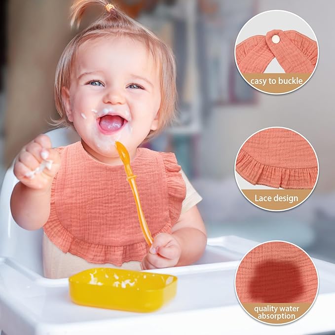 - 1.Experience Unmatched Quality and Style with Our Baby Bibs: Our baby bibs are meticulously crafted with four layers of 100% Muslin cotton material, offering superior comfort, durability, and excellent absorbency. Say goodbye to wet and messy clothes as our bibs keep your little one clean and dry throughout the day.
