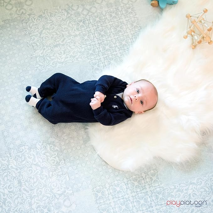 - STYLISH DESIGN - This neutral patterned gray square baby playmat tiles provides a safe and inviting surface for your little one while enhancing the look of your playroom, exercise room, daycare or school.