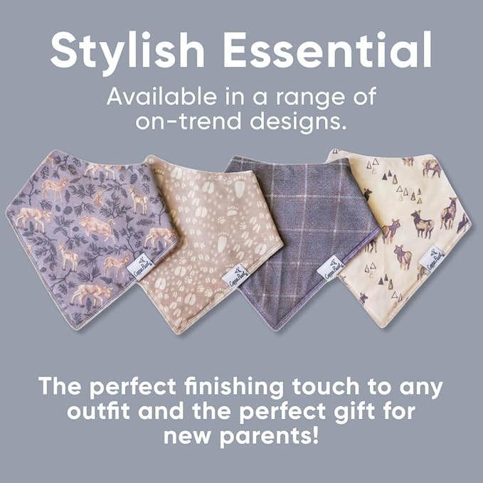 Copper Pearl 4 Pack Soft Cotton Baby Bibs for Drooling and Teething, Absorbent Drool Bibs for Baby Girl and Boy, Adjustable to Fit Newborns to Toddlers, Tons of Styles (Timber)