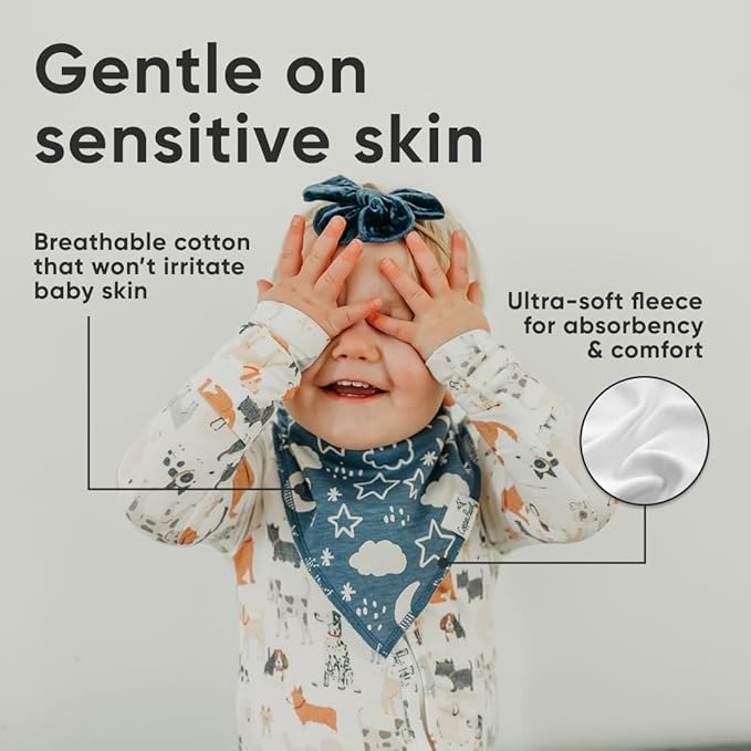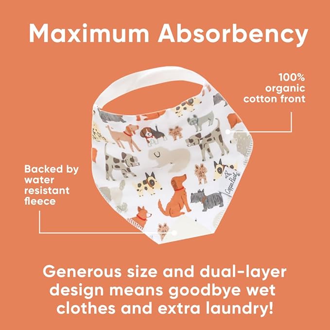 - MAXIMUM ABSORPTION: Fronted by ultra-soft Organic Cotton and lined with water-resistant polyester fleece to provide an extra layer of absorbency. Each bib is crafted with dual-layer protection against heavy drooling or spit-up, keeping your baby dry and comfortable.