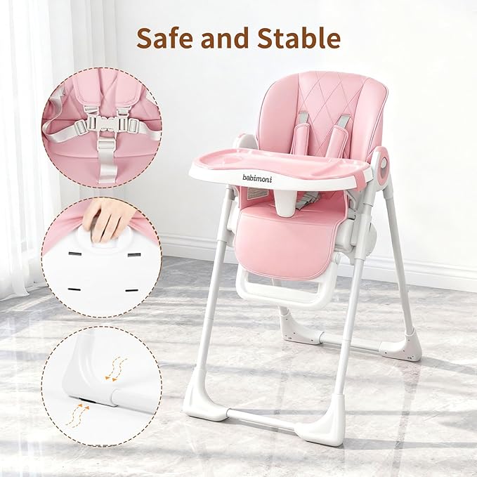 - Safe and Secure: Our baby high chairs is made of durable steel tubing to ensure stability. Adjustable 5 point harness and smooth, edge-free corners, it ensures your baby's safety. So parents can rest assured your baby is safe while eating.