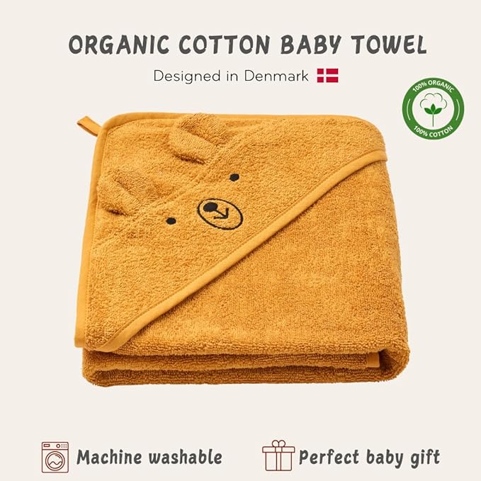 Organic Cotton Baby Hooded Towel 32' x 32' Super-Soft & Absorbent Baby Towel for Newborn (Bear - Autumn Yellow)