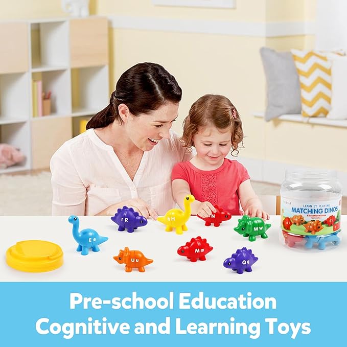 - Matching Letters Fine Motor Toy:We have released a new letter matching game with 13 cute dinosaurs in three different shapes. 26 letters on 13 cute dinosaurs. Each dinosaur has two pairs of letters on it, both uppercase and lowercase. These cute alphabet dinosaurs come in a variety of different colors: red, blue, green, orange, purple, and yellow, making it easy to grab kids' attention!