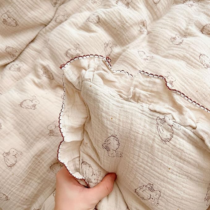 BuLuTu 2-Layer Cotton Muslin Toddler Pillowcase Rabbit Pattern, Soft Breathable Travel Pillow Case Fit for Boys Girls Toddler Pillow 13"x18"or 14"x19", Nursery Decor Kids Pillow Cover 14"x20"