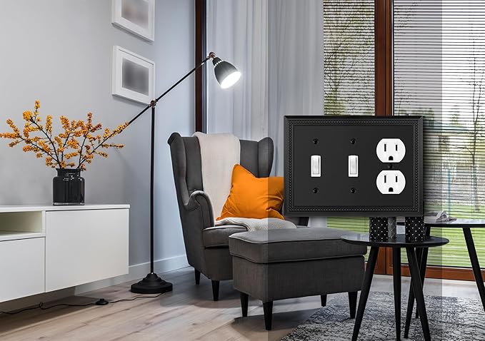 Henne Bery Sunken Pearls Heavy Duty Decorative Wall Plate Switch Plate Outlet Cover (Double Toggle/Single Duplex, Matte Black)